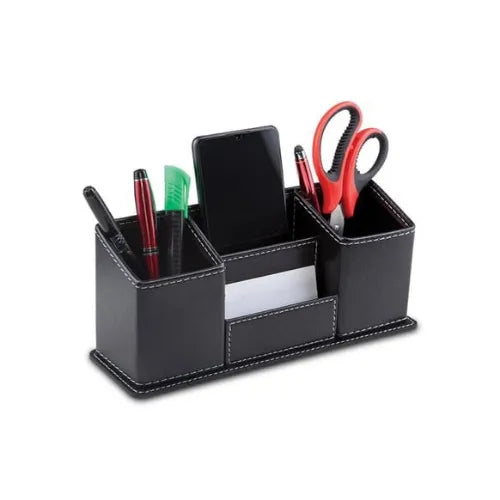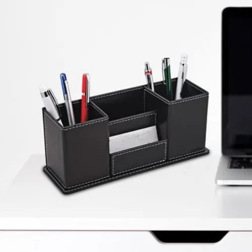 Masanızda profesyonel bir görünüm ve düzen arıyorsanız bu şık suni deri kalemlik tam size göre kartvizit bölmesi ile ofisinizde düzenli bir alan oluşturun minimalist tasarımıyla hem işlevsel hem de estetik bir çözüm sunar
