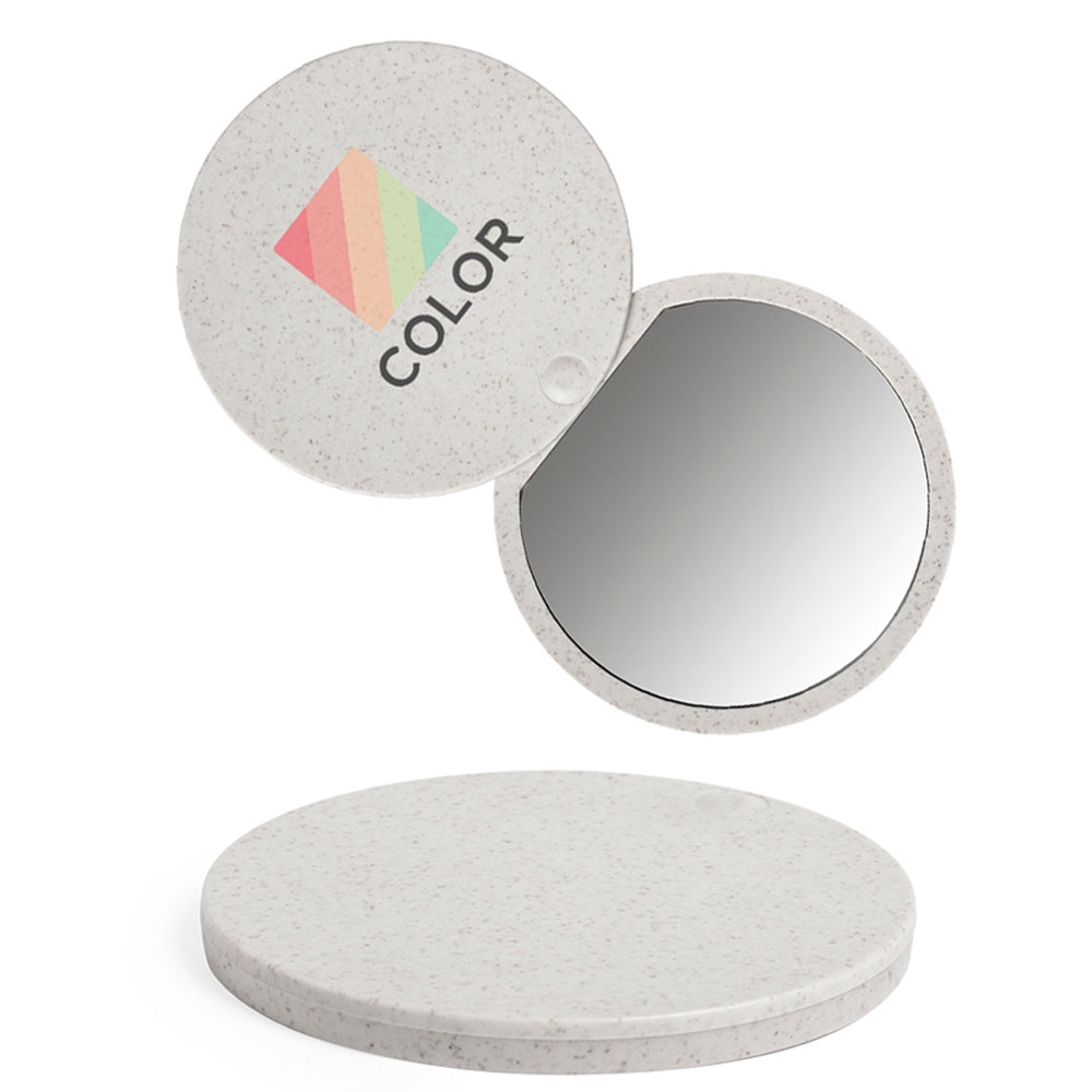 Buğday samanından yapılmış katlanır ayna Ø 7 cm ölçüsüyle çevre dostu ve kompakt bir kişisel aksesuar sunar katlanabilir yapısı sayesinde çantalarda ve ceplerde rahatça taşınır