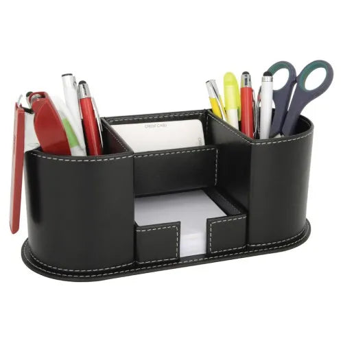 Ofis ortamınızda düzeni ve şıklığı bir arada sunan bu suni deri kalemlik, notluk ve kartvizit bölmesiyle işlevselliği ön planda tutar. Masa üstü kullanımda profesyonel bir duruş sağlar.