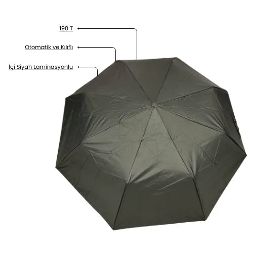 Otomatik Şemsiye (190T Siyah Laminasyonlu – Rüzgâra Dayanıklı)
